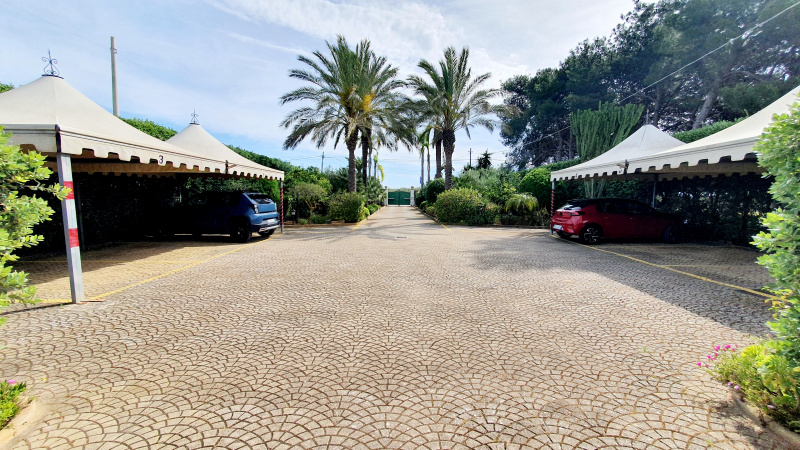 Interni ed esterni della struttura, con foto del parco e della piscina sia di giorno che di notte.